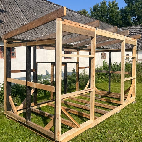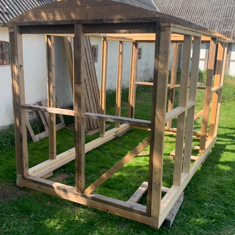 15 m2 konstruktion, restsalg rammer, gulvbjælker og spær.