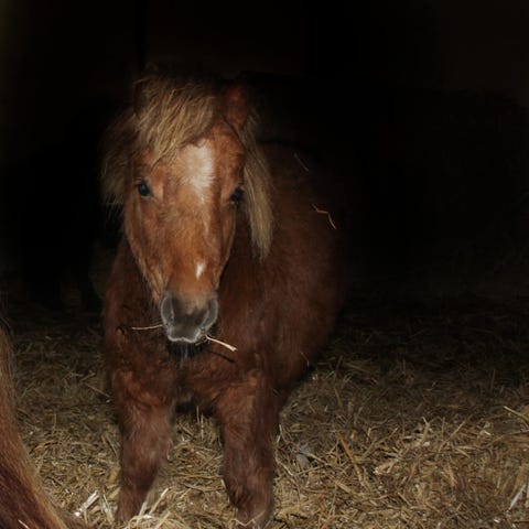 Sød broget hingst han er ca 80 cm han kan tåle græs og kan gå med hopper kan evt levers som vallak og med pas