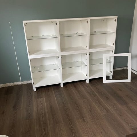 Fejler ingen ting. Har glasplade hele vejen og der er to hylder i hver der hører også “tryk” med til lågerne som man kan sætte på hvis man vil :)