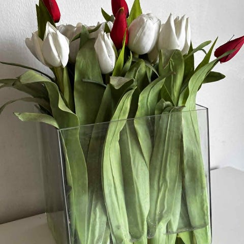 Stor flot vase, hvor blomsterne kan følge med gratis.