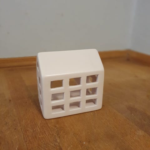 Rigtig fint kobber-fyrfads-hus til at hænge. Kan også stå.
