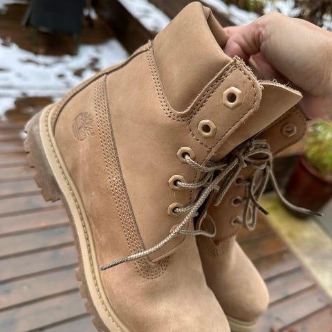 Timberland Støvler i størrelse 37, lavet af brunt læder. Støvlerne har snørebånd og er designet til at være vandtætte. De har en robust sål med godt greb, hvilket gør dem velegnede til udendørs brug.