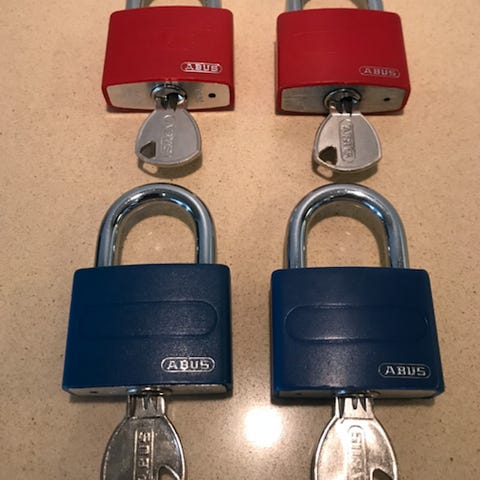 Massiv hængelås fra Abus med 5 cifret kode. Har kun siddet indendørs. Krankæden kan følge med hvis det har interesse så den kan bruges som cykellås.