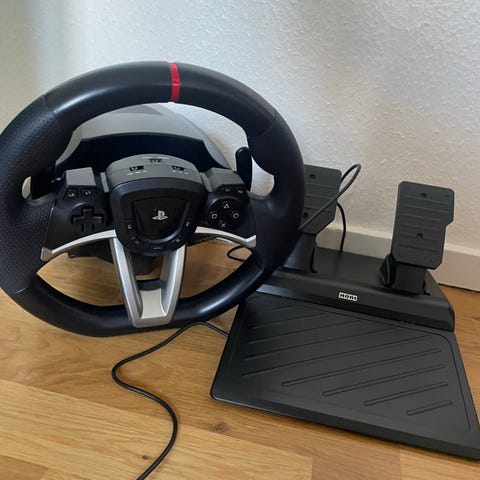 Thrustmaster T300 RS GT racing wheel til Playstation 5, Playstation 4, og til PC. rat og pedaler i sort farve. Med Force feedback. Originalt købt til 3000 kr. super god kvalitet. Jeg har selv brugt det i cirka et år, og det er super fedt, sælger bare fordi jeg ikke får det brugt mere.