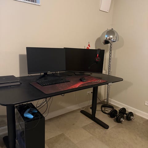 Har dette kontorbord med hæve/sænke funktion, der er elektrisk.