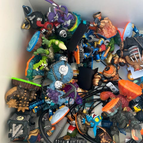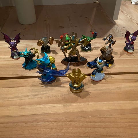 Skylanders samling af figurer i forskellige farver og designs. Figurenes materialer og størrelser varierer.