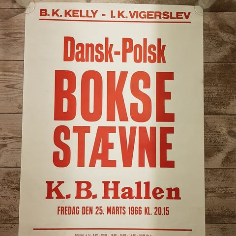 60 år gammel original plakat 63 x 85 fra boksestævne i K.B - Hallen. Med b.la Børge Krogh & en ung Tom Bogs på plakaten. Unikt ældre samleobjekt for den bokse & sports-interesserede