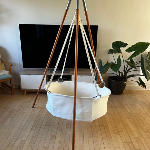 Leander vugge til børn i neutral farve. Vuggen er designet til at give et trygt og komfortabelt sovemiljø for spædbørn.