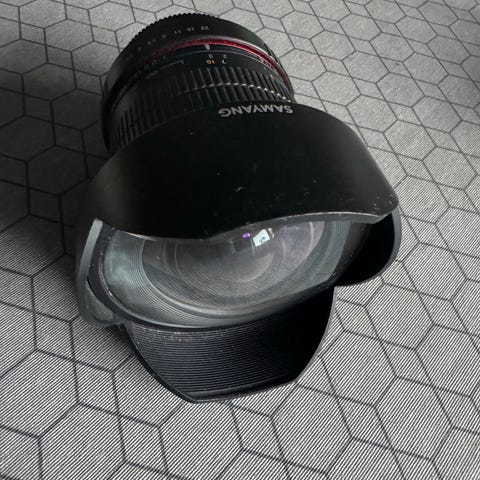 Samyang 8mm Ultra Wide Angle Fisheye linse til Canon. Original kasse og manual medfølger.