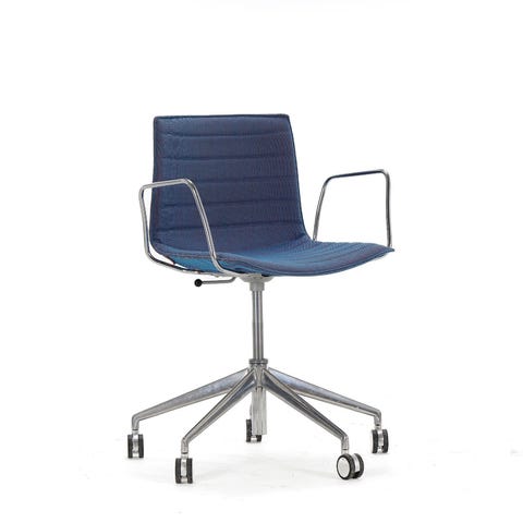 Kontorstol, model Arper Catifa 53, armlæn af forkromet stål, fempasfod af poleret aluminium med returdrej, så stolene altid står pænt.