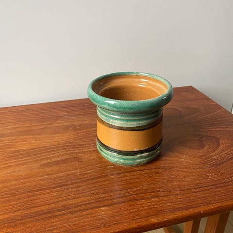 Skålen er rund med et blomstermotiv i bunden. Den har en brun kant og en lys, glaseret overflade.,Afhentes i:,Røde Kors Kolding (621),Bemærk at mail, chat og beskeder ikke besvares, og varen skal købes på knappen "Gå til varen"