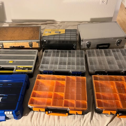 Denne sorteringskasse med 41 skuffer er en alletiders måde at organisere dit arbejdsområde ved hjælp af de 40 små skuffer og den ene store. Den er perfekt til alle småting såsom små maskinkomponenter, tilbehør eller endda dine gør-det-selv-projekter. Du kan vælge at bruge enten den store skuffe eller en lille alt efter størrelsen på de ting, du vil lægge i dem. Holdbart, gennemsigtig plastik sørger for, at du kan se, hvad der ligger i skufferne. Der er 2 små huller på bagsiden af kassen, så du kan fastgøre den til en væg eller en anden overflade.