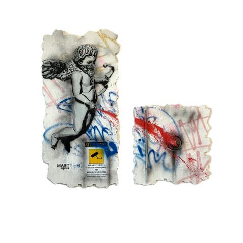 Original street art-værk af Mart Signed (XX) med titel BICYCLE kick (Carlo parola), fra 2025, spraymaling og stencils, popkultur som motiv, 60 cm x 120 cm, håndsigneret, i god stand, Italien, solgt af ejer eller forhandler, leveret klar til ophæng med certifikat for ægthed og sporing og forsikret forsendelse via Mail Boxes Etc. Klik på den blå "gå til varen" knap, for at købe eller byde på denne vare. Den samlede pris vil blive vist inden du afgiver dit bud.