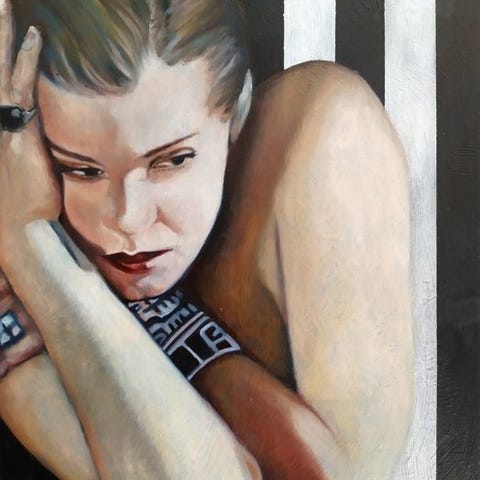 Oliemaleri af Sara Selas (født 1994), med titel L'Esclave, fra 2023, et contemporain portræt i originaludgave, måler 56 × 65 cm med ramme, håndunderskrevet, fra Spanien. Klik på den blå "gå til varen" knap, for at købe eller byde på denne vare. Den samlede pris vil blive vist inden du afgiver dit bud.