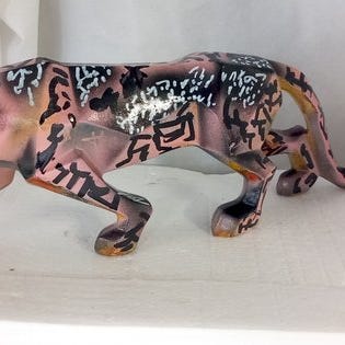 Vida parykstativ i plastik, helt håndmalet af kunstneren ved brug af spraymaling og akryl, med en blank fixativ overflade. Består af tre dele (hoved + buste + bund), det kommer adskilt i sin originale æske.
