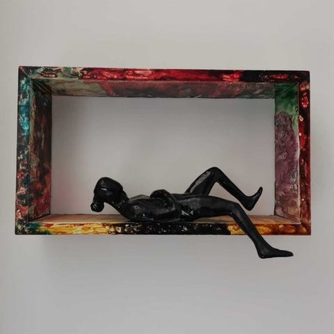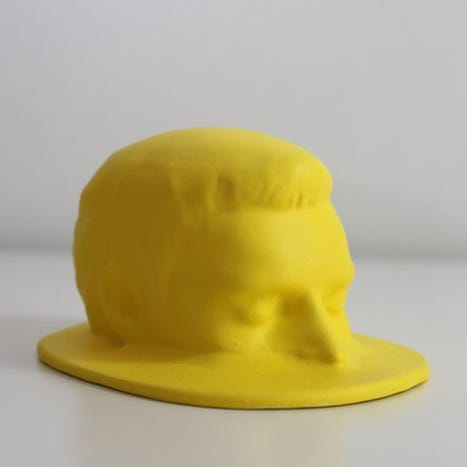Blue Cube er en ophobning af flere gipshoveder placeret på en træklods. Kunstneren arbejder udelukkende ud fra sit eget selvportræt, som han varierer i alle sine værker, i forskellige størrelser, farver og materialer. Denne bevidste gentagelse styrker udforskningen af identitet, hukommelse og tilstedeværelse.