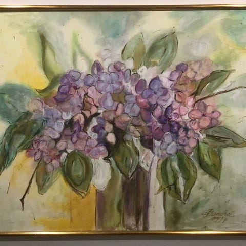 oljemaleri med blomsterstilleben, underskrevet „Richter“ nederst til venstre.