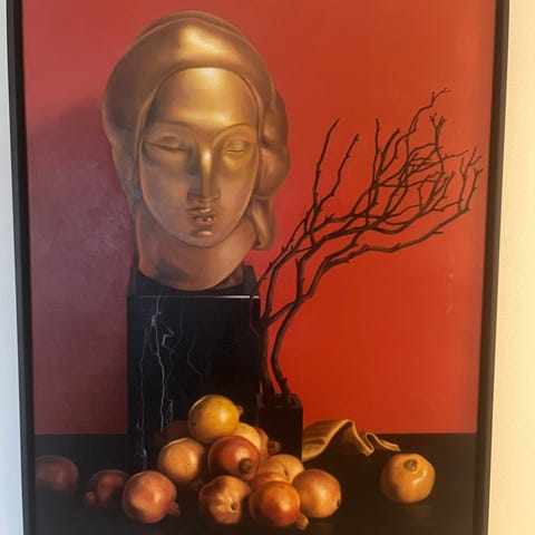 Olie på lærred, monteret på træpanel.