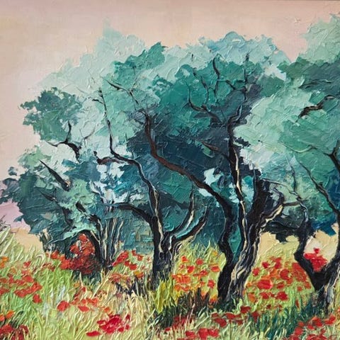 I dette værk svæver den unge kvinde roligt på overfladen af rent vand, hendes ansigt vendt mod lyset, med lukkede øjne som i dyb meditation. Overfladen af søen spejler orange glimt, i kontrast til den delikate grønne og blå nuancer. Hver bølgende bevægelse fortæller om langsom vejrtrækning, tidsophør, hvor krop og vand synes at være ét. Atmosfæren svinger mellem drøm og virkelighed og inviterer til at give sig hen til en dyb ro.