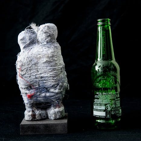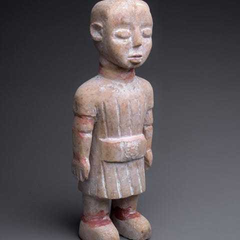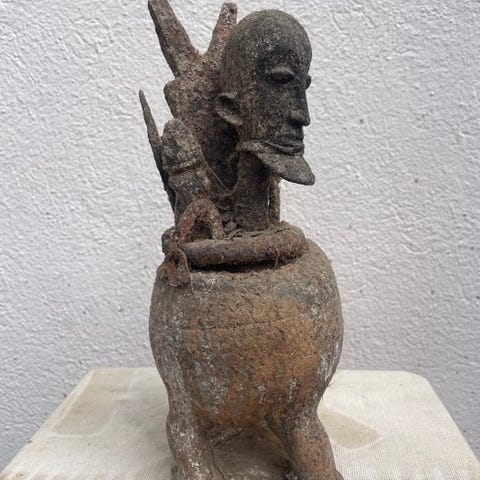 Vaudou-præstens fetich, indsamlet i Belgien under et boets skifteopgørelse, blandt et sæt ældre genstande fra Vestafrika.