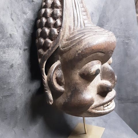 Bamana Ntomo maske fra Mali, Bamabara-kultur, udhulet i træ og 53 cm høj, dateret til 1960–1970, i god brugt stand med mindre slid, ikke inkluderet stativ. Klik på den blå "gå til varen" knap, for at købe eller byde på denne vare. Den samlede pris vil blive vist inden du afgiver dit bud.