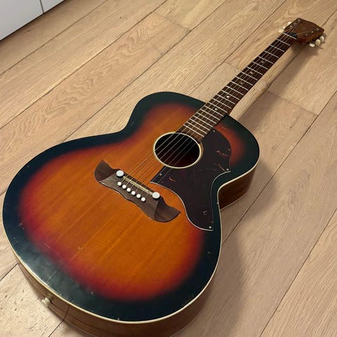 Framus archtop parlour-guitar, model 5/51 studio, produceret i 1950 i Tyskland, af træ, ca. 4 kg, tilstand discreet, inkluderer rejseetui, testet og i funktion; fuldstændig restaureret af mesterslutør Germano Fusco med halsjustering, nybundsæt, dobbelt-aktions truss rod installeret og nitrocellulose-lakering genostrat; fås med specialfremstillet flydende pickup af G. Fusco og original gigbag. Klik på den blå "gå til varen" knap, for at købe eller byde på denne vare. Den samlede pris vil blive vist inden du afgiver dit bud.