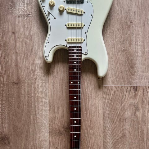 Fuld funktionsdygtig, udstyret med nye nickel-wound strenge 9–42. Elektronikken er inspiceret, afskærmet med aluminium og omkablet ved hjælp af vintage-stil klædeledning.