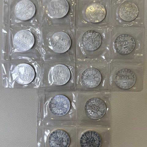 Serie divisionale 1972, 1974, 1975, 1976, med sølv og æske.