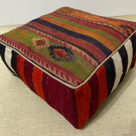 Denne autentiske puf / stol / sofa er lavet af 100% håndvævede Kelim, og benene er af træ. Meget ideel til din stue, soveværelse eller køkken. (Kelim er håndvævede tæpper lavet af uld og bomuld).