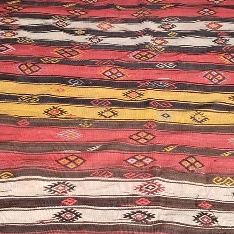 Håndvævet designer kilim fra Tyrkiet, model Handgewebter Designer Kelim - Sammler Stück, materiale uld på uld, mål 216 x 153 cm, i rigtig god stand, 21. århundrede, professionelt renset. Klik på den blå "gå til varen" knap, for at købe eller byde på denne vare. Den samlede pris vil blive vist inden du afgiver dit bud.