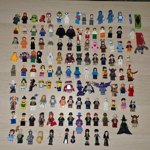 Lego Ideas minifigurer samling med 74 brugte figurer uden originalemballage, herunder Sesamstraat, Ghostbusters, Beatles, Charly og chokoladefabrikken, The Flinstones, Home Alone og Friends. Klik på den blå "gå til varen" knap, for at købe eller byde på denne vare. Den samlede pris vil blive vist inden du afgiver dit bud.