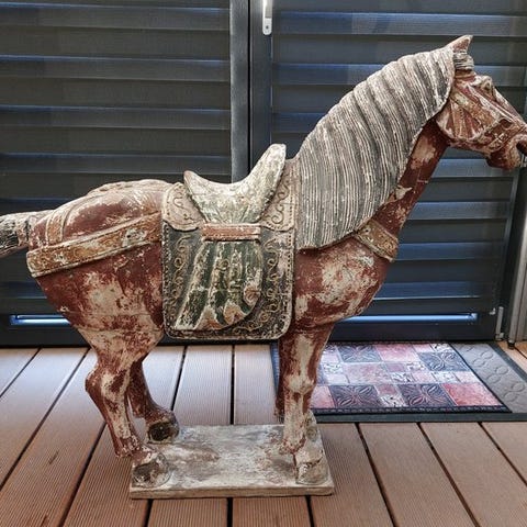 Cavalier, senoufo-træskulptur fra Mali, 27 cm høj, 31 cm bred, 5 cm dyb, i god stand, oprindelse privat samling. Klik på den blå "gå til varen" knap, for at købe eller byde på denne vare. Den samlede pris vil blive vist inden du afgiver dit bud.