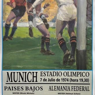 Smuk litografisk plakat af kampen mellem Real Madrid og Inter Milan spillet på Santiago Bernabéu stadion i 1981.