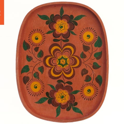 Bakke - Træ, Pragtfuld stor bakke, håndmalet med blomster - Malede bakker