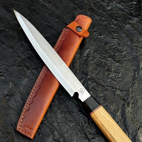 Lædercover inkluderet – et håndsyet, beskyttende hylster, der beskytter bladet og tilføjer et luksuriøst præg, hvilket gør det til en ideel gave til kulinariske entusiaster,