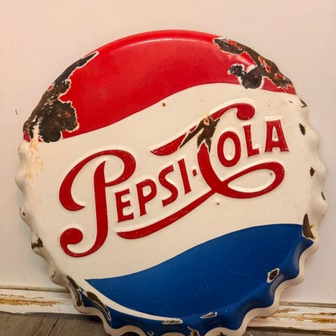Pepsi-Cola flaskehætte skilt - Emaljeskilt - Rustfrit stål