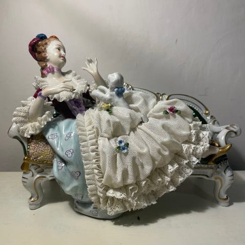 En porcelænsfigur af en siddende nøgen kvinde, lavet i Ungarn af Aquincum Budapest, fra 1950-tallet, i fremragende stand med dimensionerne 120 cm i bredde, 244 cm i højde og 110 cm i dybde. Klik på den blå "gå til varen" knap, for at købe eller byde på denne vare. Den samlede pris vil blive vist inden du afgiver dit bud.