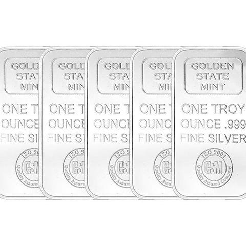 5 Troy Ounce - Sølv 999 - 5 oz Golden State Mint 999 Fine Silver Bar