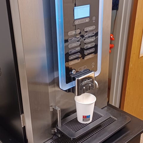 Victoria Arduino Venus espressomaskine, stor model, Venus family, fra 90'erne. Højde 50 cm. Beskrivelse af maskinen. Inkluderer 1 kaffefilterholder. Testresultater: Maskinen tændes. Modstanden varmer op. Vandpumpen fungerer. Den starter op. Laver støj, da den er tom for vand. Jeg har ikke prøvet at lave kaffe. En revision anbefales for kalkrensning. Som vist på billedet viser nogle messingdele tegn på tidens gang. Da det er en ret krævende maskine, både at sende og pakke, anbefales det at tænke sig godt om, før køb. Tak, Victoria Arduino Venus.