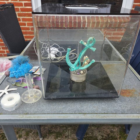 Akvarium med LED-lys i forskellige farver,