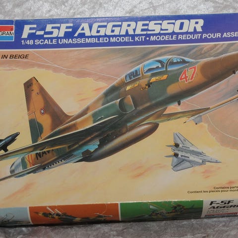 Byggesættet er usamlet, men plastikposerne til de støbte dele er brudt. Alle delene er til stede. Der er DECALS og maleinstruktion til en henholdvis U.S. Air Force og en U.S. NAVY udgave. Selve æsken har brugsspor