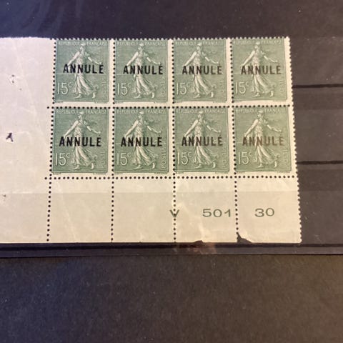 Frankrig afanr 136 firblok overtryk annule postfrisk
