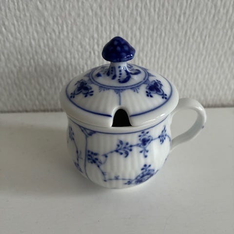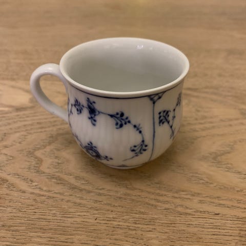 Royal Copenhagen Musselmalet Riflet Kaffekop med låg Blå og hvid porcelæn