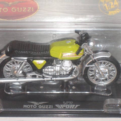 Van Veen OCR 1000 1976 modelmotorcykel i grøn farve. Detaljeret miniaturemodel med fokus på motorcyklens design fra 1976.