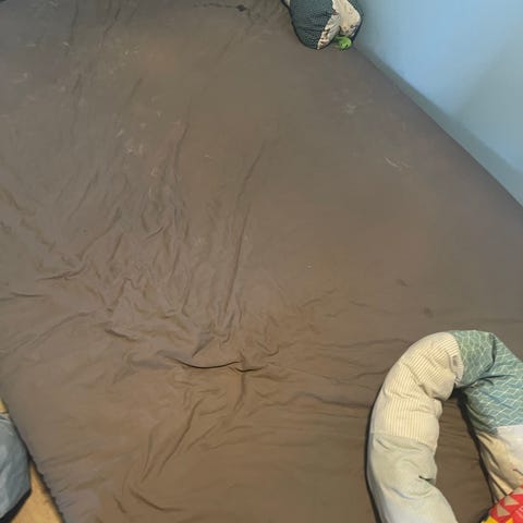 IKEA madras i blå farve. Madras med foldbar funktion, velegnet til gæsteseng eller ekstra soveplads. Måler 120 x 200 cm og en højde på 10 cm.