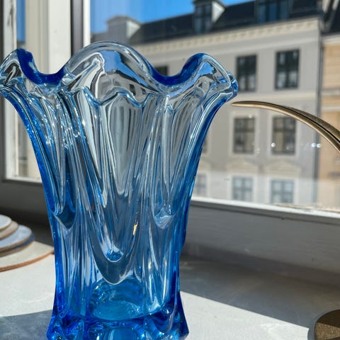 Smuk blå vase, der lidt ligner Murano Candy Lampe