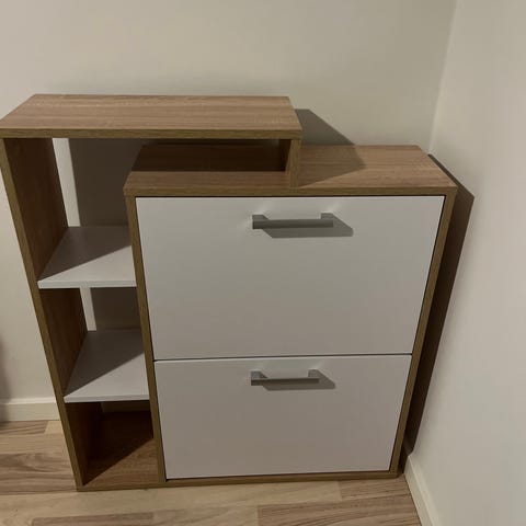 Fine skoreoler fra simply organized. Fylder minimalt og kan stables. Plads til 8 par sko i én reol. Sort plastik. Alle tre for 100,-