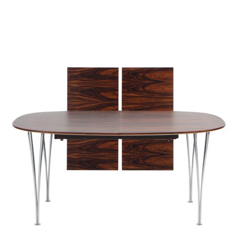 Elipsebord af Amerikansk valnød, monteret med spændben af forkromet stål.