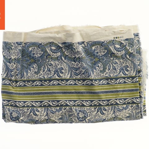 dug aldrig brugt med et tydeligt mønster bestående af overlappende cirkler, der skaber en blomstret effekt. Farven er mørklilla, og målet på stoffet er 154x160 cm.