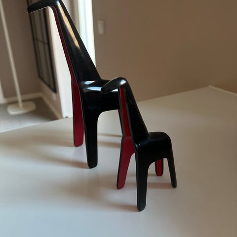 Et par gyldne giraff dekorationer lavet af metal. Girafferne har en skinnende overflade og hver figur er 21 cm høj. Perfekte til at tilføje et strejf af elegance og unikt design til et rum.